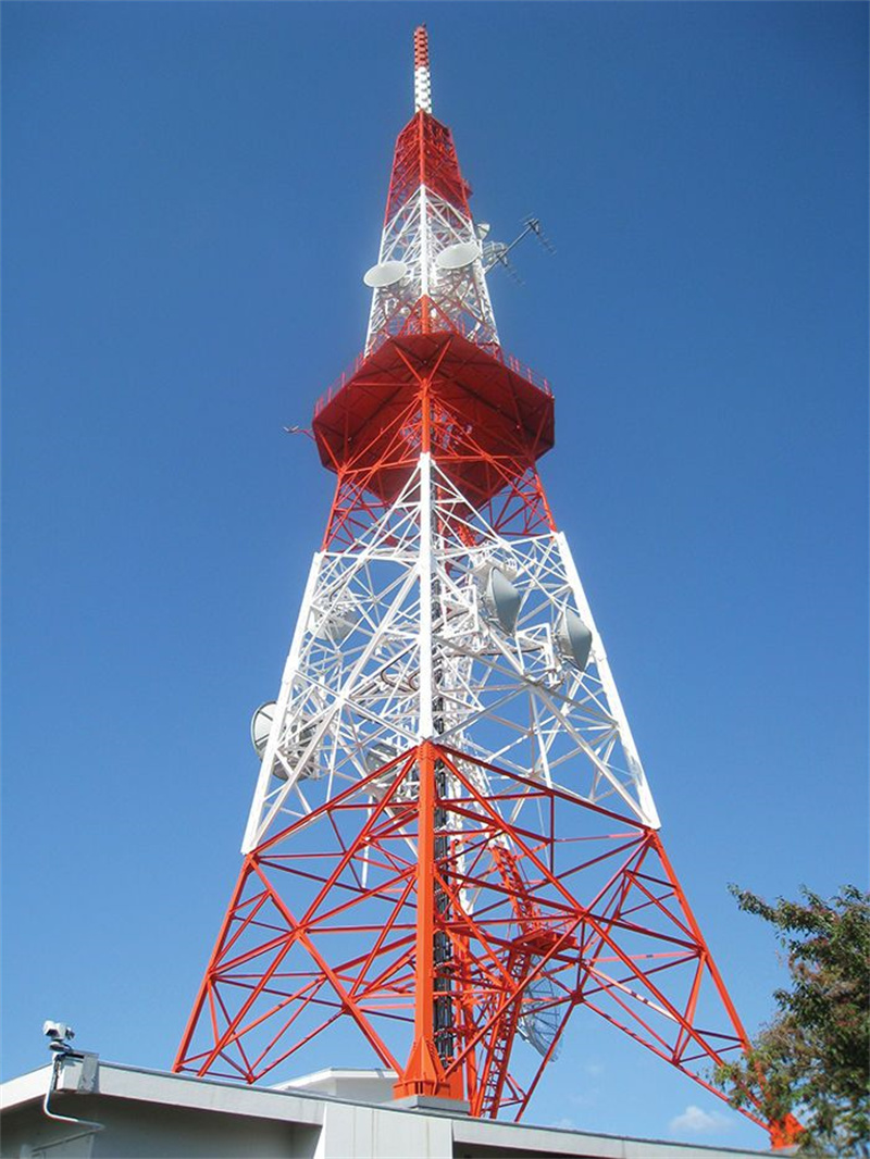 In the construction of modern communication and broadcasting television signal transmission towers, communication towers play a role in raising communication antennas, increasing the service radius of communication or television transmission signals, and achieving ideal professional communication effects, regardless of whether users choose ground level or rooftop iron towers. In addition, the rooftop also serves as a lightning protection grounding and aviation warning for the building. The dual function of decorating the office building. Adopting a four legged self-supporting structure that complies with steel structure design specifications.